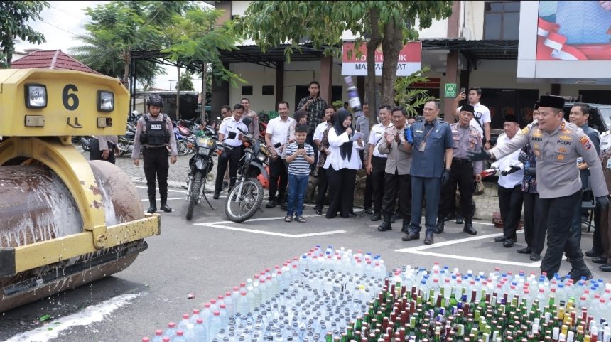 Pemusnahan dilakukan di halaman Satsabhara, Rabu (18/2/2026). Total ada 7.310 botol miras berbagai jenis dan 14 jerigen tuak yang dihancurkan. Sebanyak 2.739 botol merupakan hasil sitaan Januari–Februari 2026, sementara 5.000 botol lainnya sisa operasi akhir 2025.