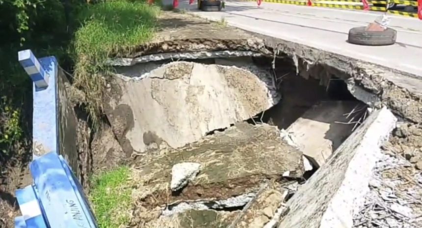 “curah hujan tinggi, air dari selokan permukiman warga menuju ke sungai, sehingga air meningkat, membuat tanah tergerus menyebabkan jembatan ambrol,” katanya.